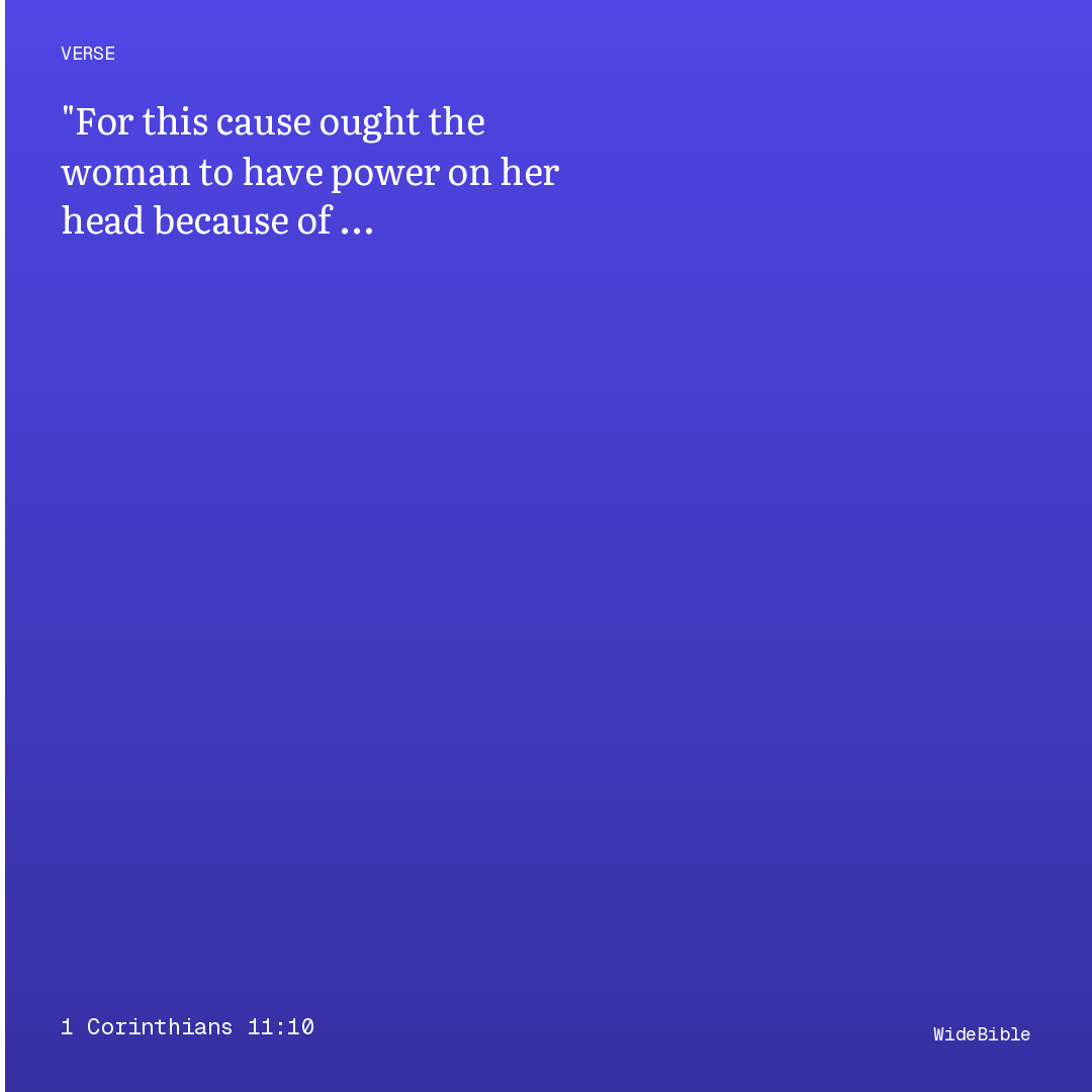 For this reason it is right for the woman to have a sign of authority on her head, because of the angels.