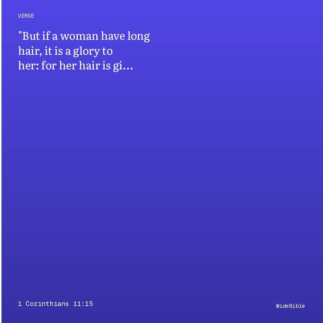But if a woman have long hair, it is a glory to her: for her hair is given her for a covering.