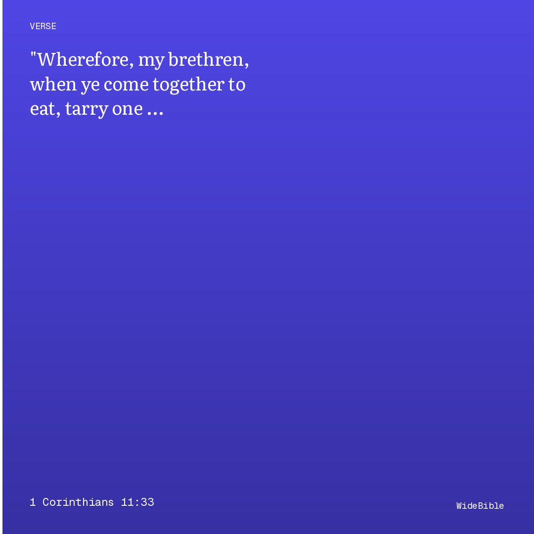 Wherefore, my brethren, when ye come together to eat, tarry one for another.