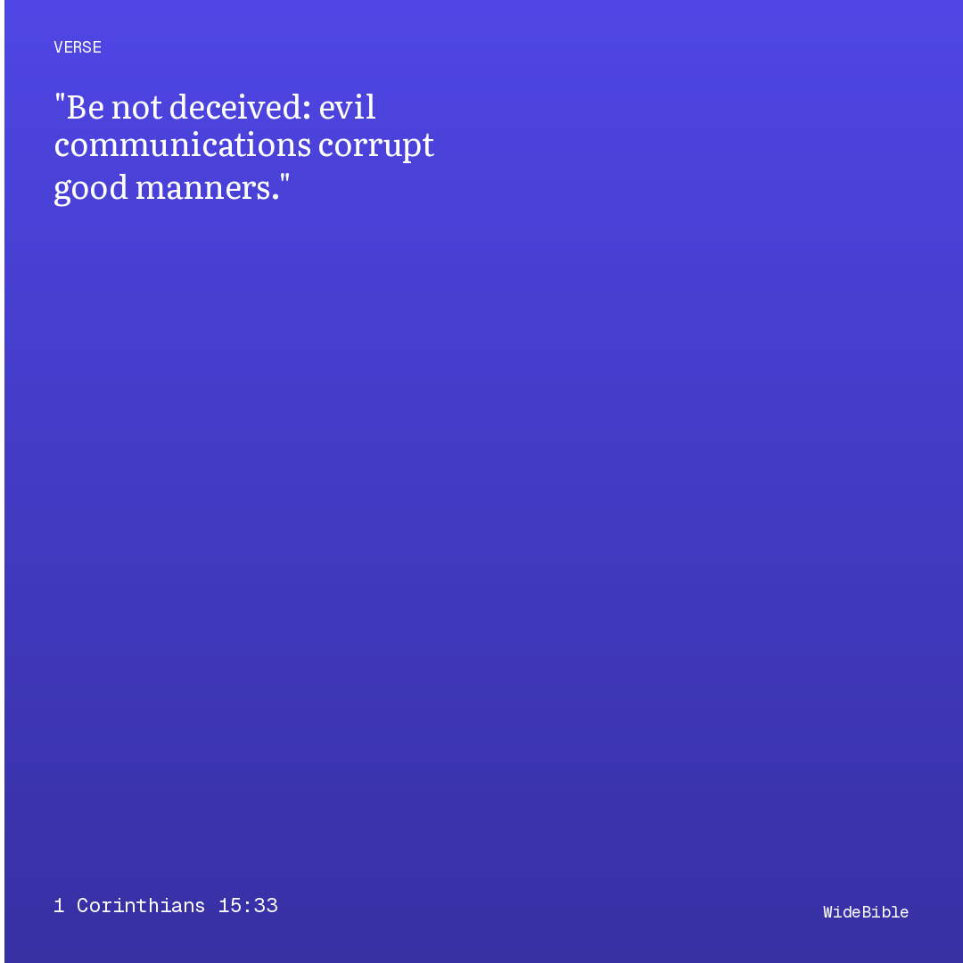 The maxim 'evil communications corrupt good manners' (phtheirousin ethe chrestaa homiliai kakai) is a citation from the Greek poet Menander's comedy Thais — one of Paul's most explicit uses of non-biblical literature. Its placement in 1 Corinthians 15, immediately after addressing those who say 'there is no resurrection' (15:12), suggests that Paul is warning that association with resurrection-deniers will corrupt the community's own faith. The proverb illustrates that Paul regarded truth in non-Christian sources as legitimate for Christian instruction — an early instance of the 'spoiling the Egyptians' hermeneutic later theorized by Augustine. The surrounding injunction 'awake to righteousness and sin not' (15:34) makes the social-corruption warning an ethical call.