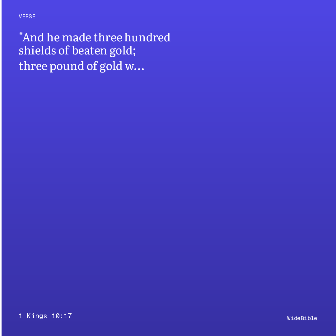 This verse from 1 Kings Chapter 10 connects to 2 cross-references. The queen of Sheba visits Solomon to test his wisdom with hard questions; she is overwhelmed by his wisdom, his palace, his food, his servants, and his temple worship. She presents extraordinary gifts of gold, spices, and precious stones; Solomon …