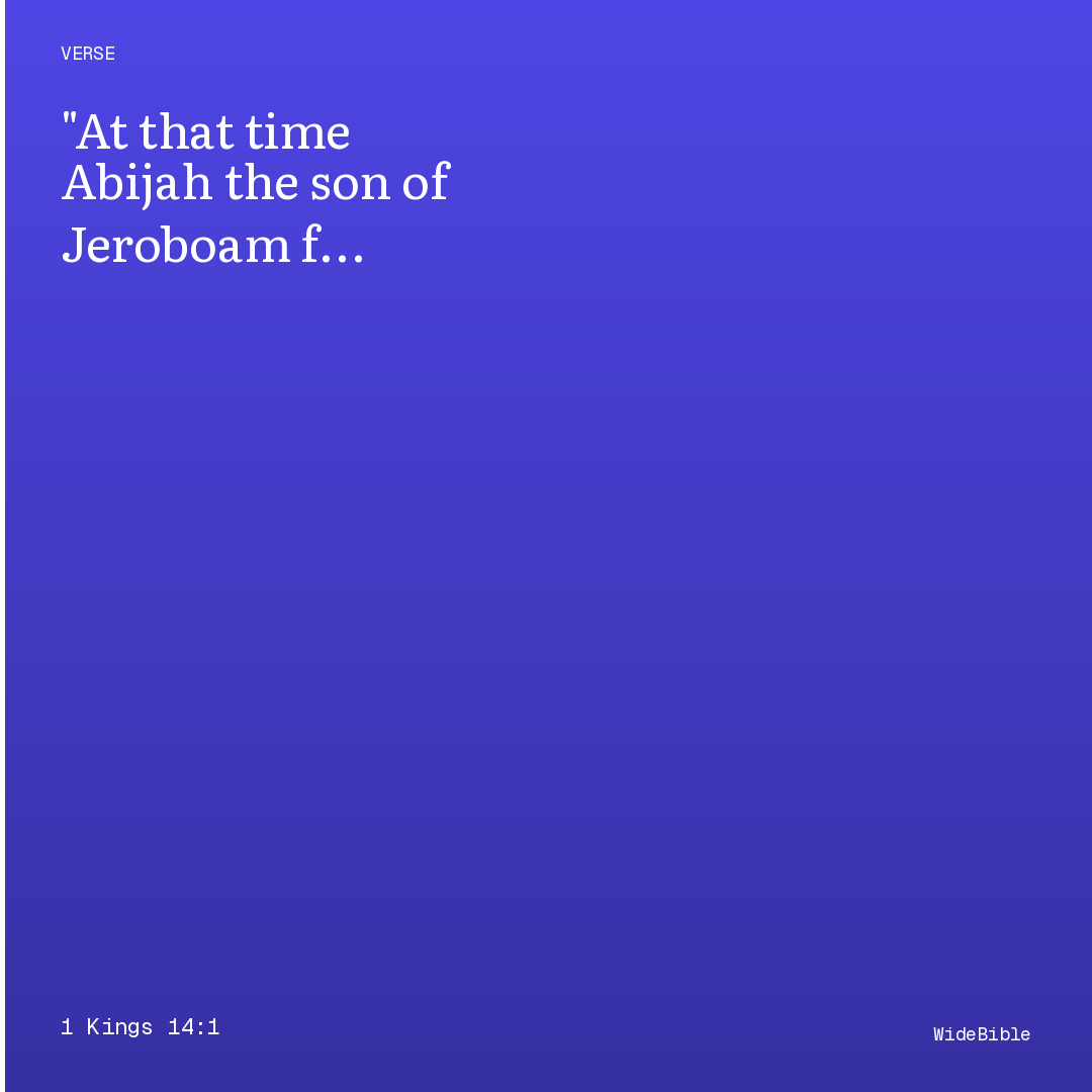 This verse from 1 Kings Chapter 14 connects to 9 cross-references. Jeroboam sends his wife in disguise to the blind prophet Ahijah; Ahijah knows her before she speaks and pronounces doom on Jeroboam's house for leading Israel into sin—all his male heirs will be cut off. His sick son dies when …
