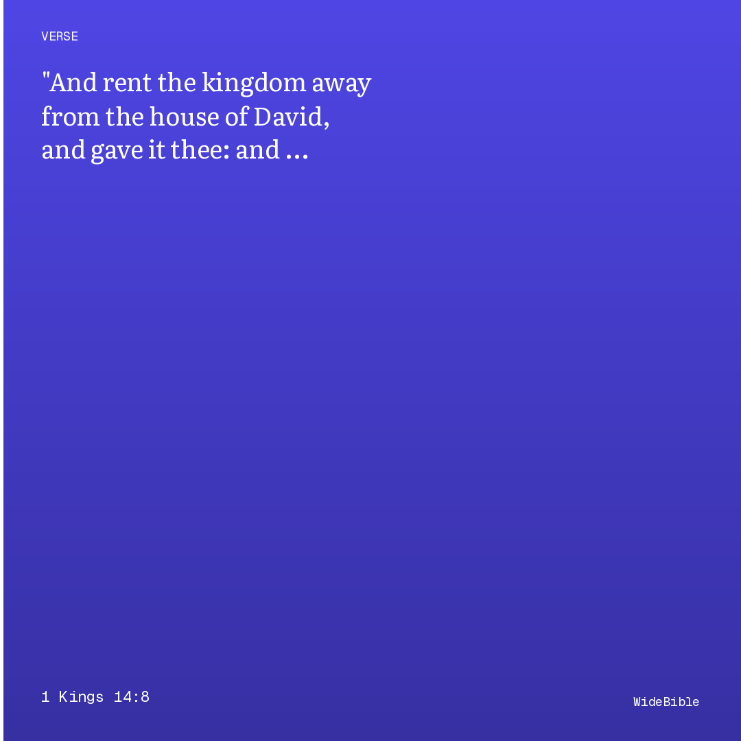 This verse from 1 Kings Chapter 14 connects to 10 cross-references. Jeroboam sends his wife in disguise to the blind prophet Ahijah; Ahijah knows her before she speaks and pronounces doom on Jeroboam's house for leading Israel into sin—all his male heirs will be cut off. His sick son dies when …