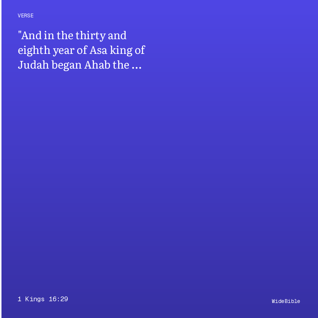 In the thirty-eighth year that Asa was king of Judah, Ahab, the son of Omri, became king over Israel; and Ahab was king in Samaria for twenty-two years.