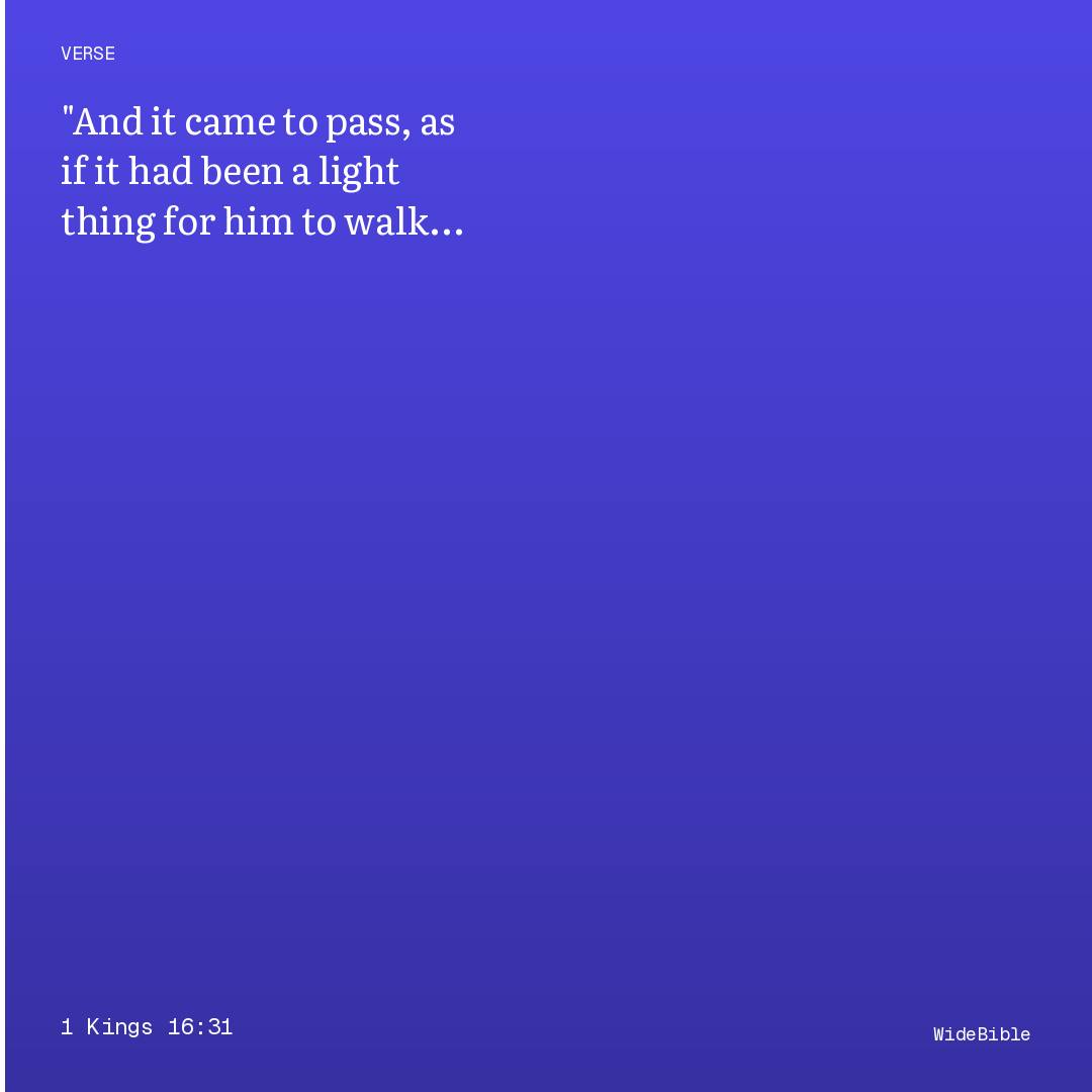And it came to pass, as if it had been a light thing for him to walk in the sins of Jeroboam the son of Nebat, that he took to wife Jezebel the daughter of Ethbaal king of the Zidonians, and went and served Baal, and worshipped him.