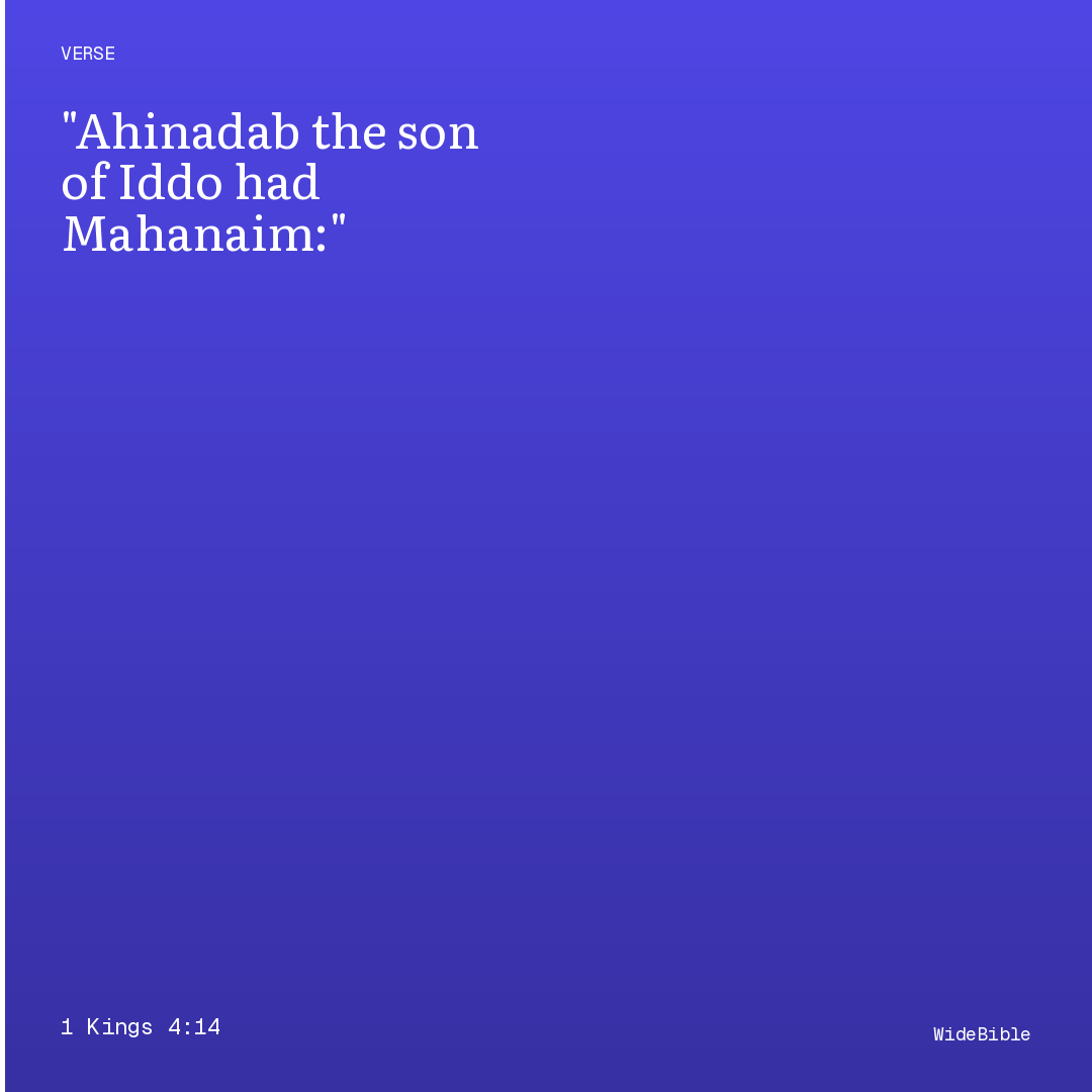 Ahinadab son of Iddo <FI>hath<Fi> Mahanaim.