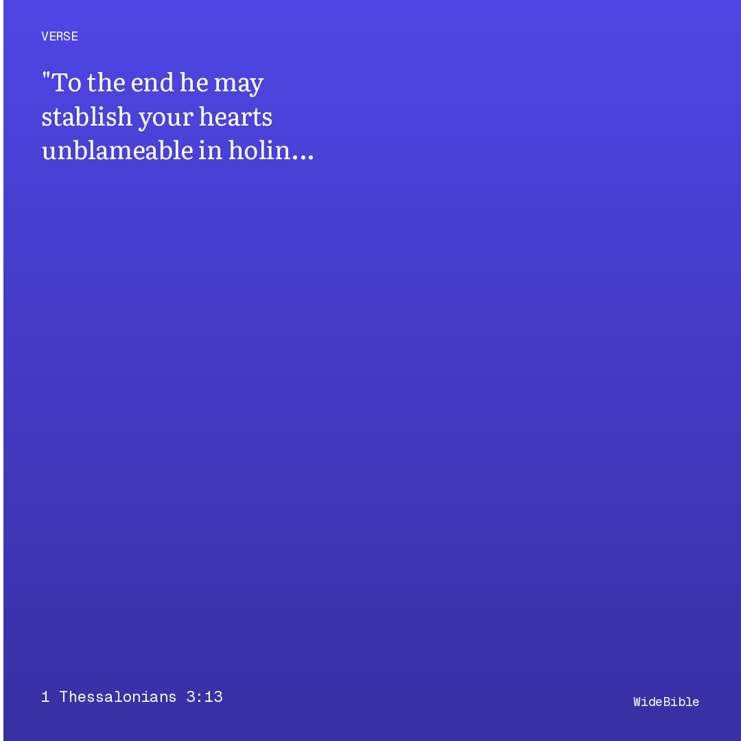 to the establishing your hearts blameless in sanctification before our God and Father, in the presence of our Lord Jesus Christ with all His saints.
