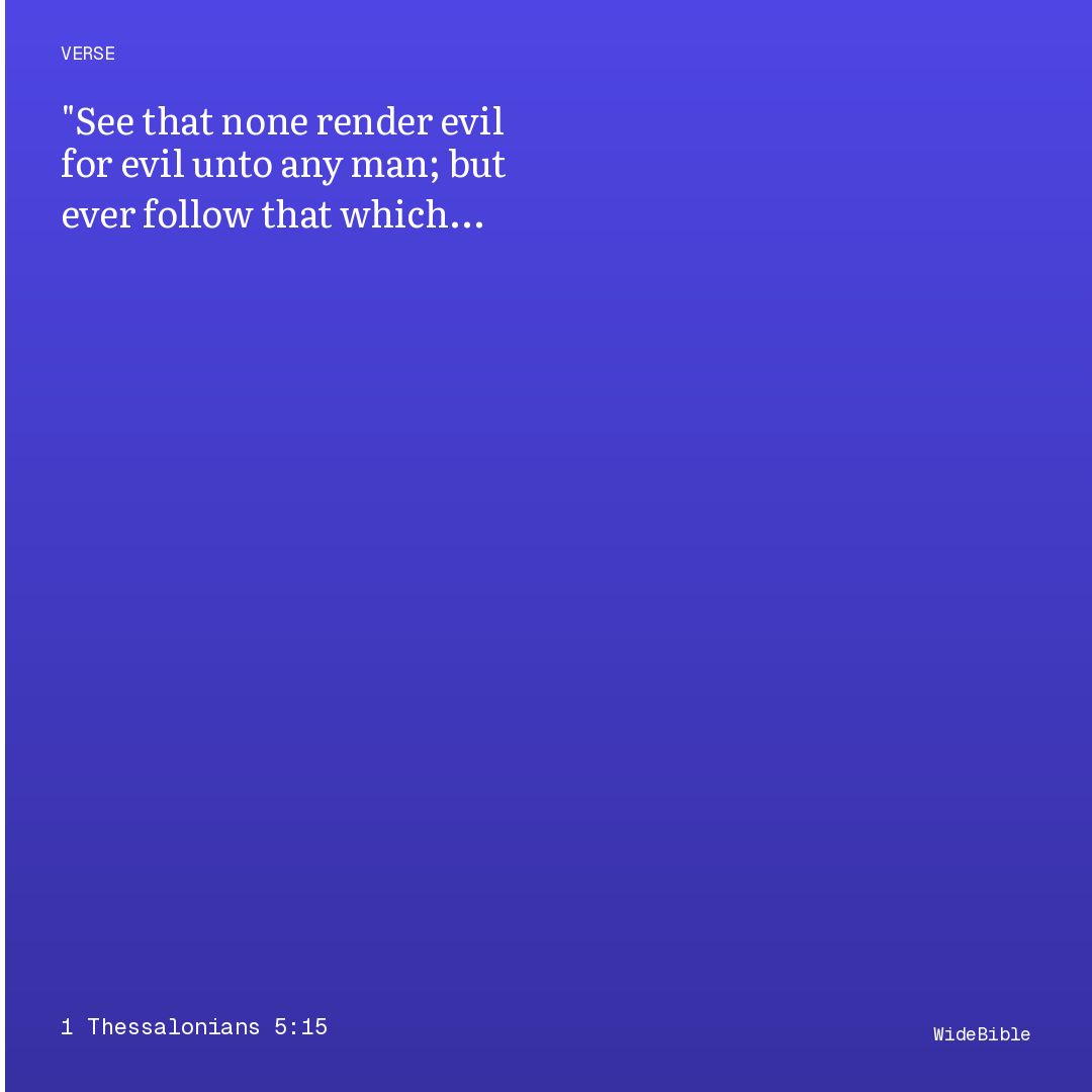 See that none render evil for evil unto any man; but ever follow that which is good, both among yourselves, and to all men.