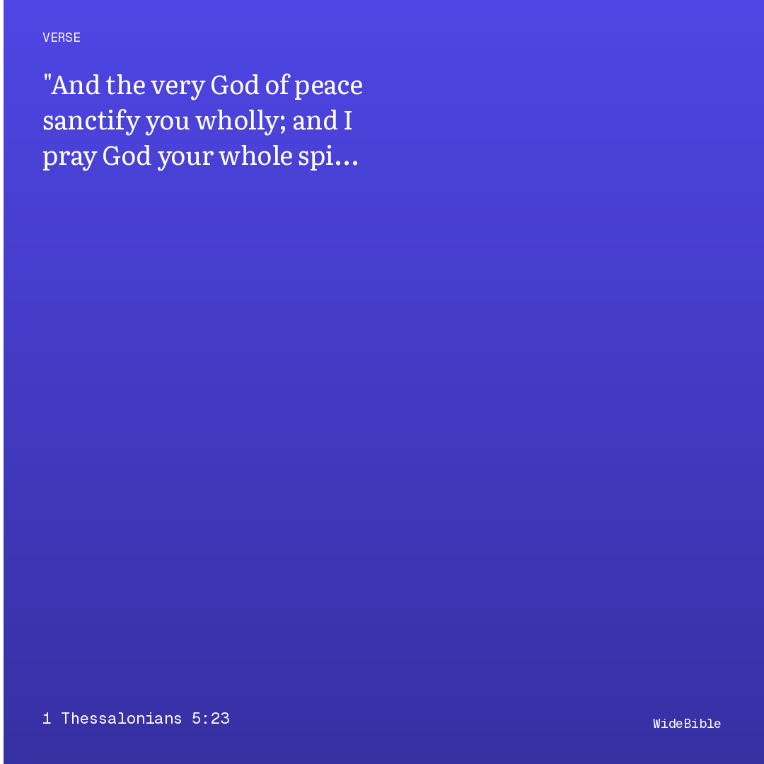 And the very God of peace sanctify you wholly; and I pray God your whole spirit and soul and body be preserved blameless unto the coming of our Lord Jesus Christ.