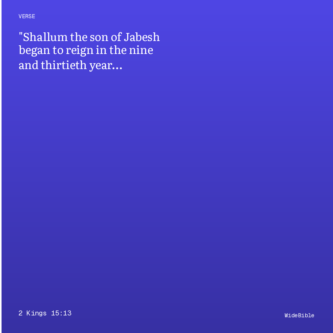 Shallum, the son of Jabesh, became king in the thirty-ninth year of Uzziah, king of Judah; and he was ruling in Samaria for the space of one month.