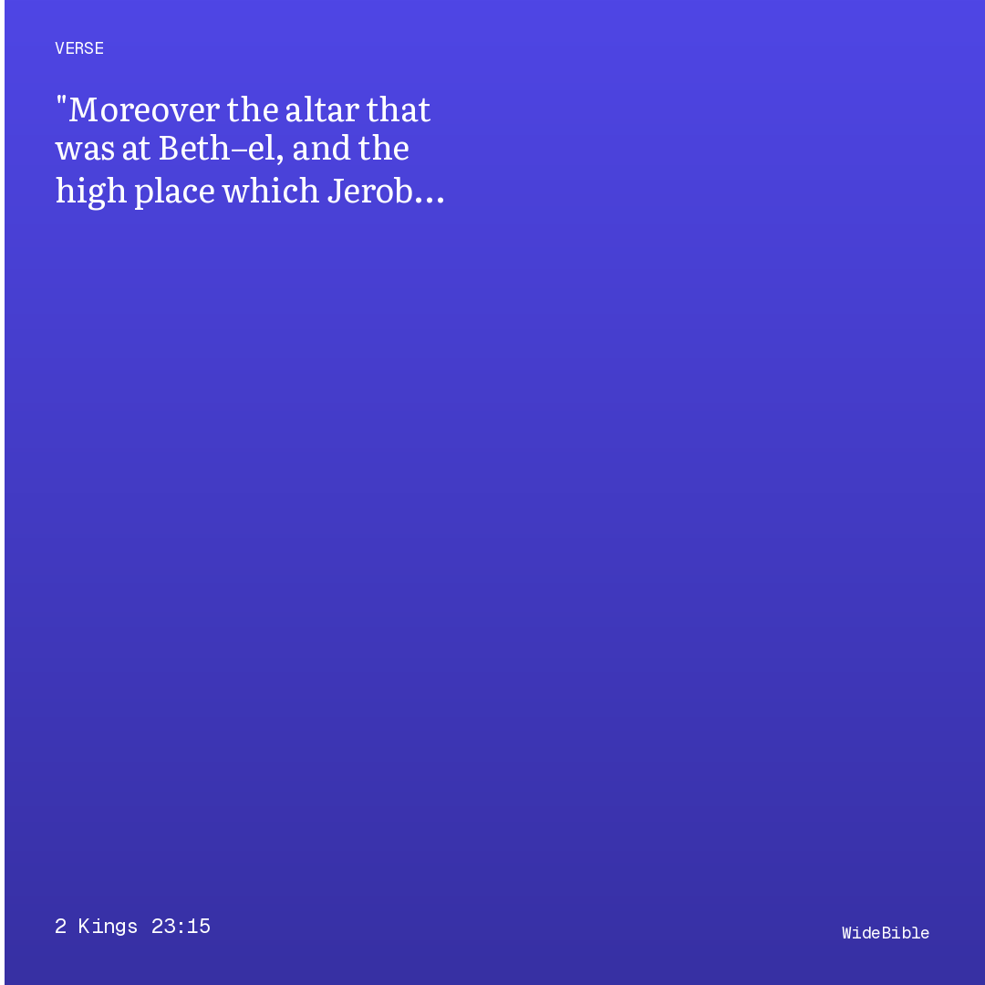 Moreover the altar that was at Beth-el, and the high place which Jeroboam the son of Nebat, who made Israel to sin, had made, even that altar and the high place he brake down; and he burned the high place and beat it to dust, and burned the Asherah.