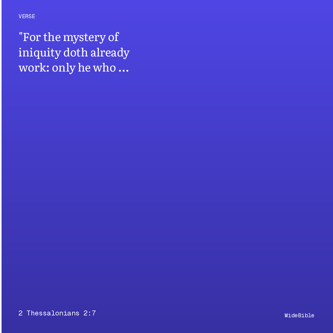 For the mystery of iniquity doth already work: only he who now letteth will let, until he be taken out of the way.