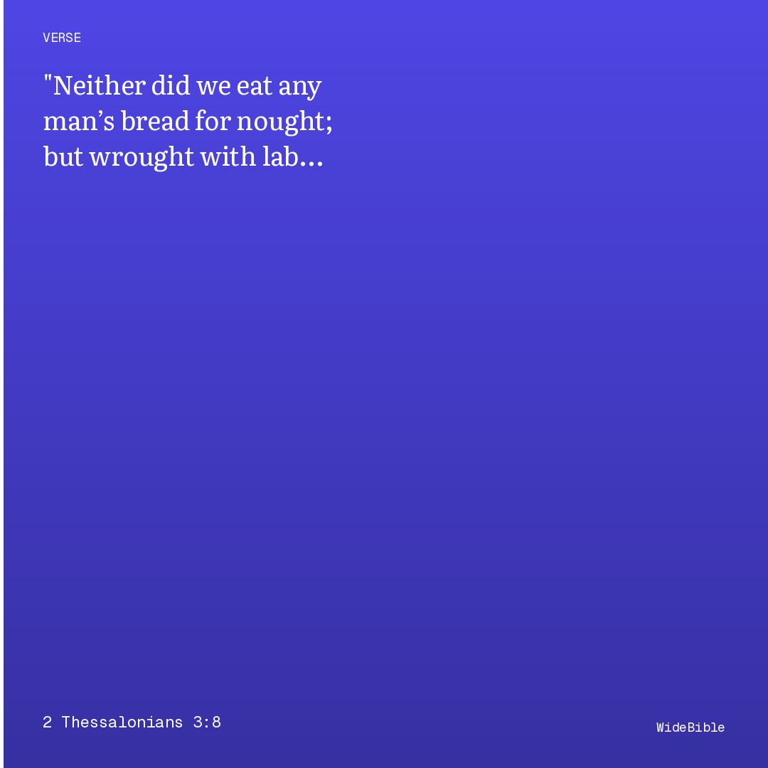 Neither did we eat any man’s bread for nought; but wrought with labour and travail night and day, that we might not be chargeable to any of you:
