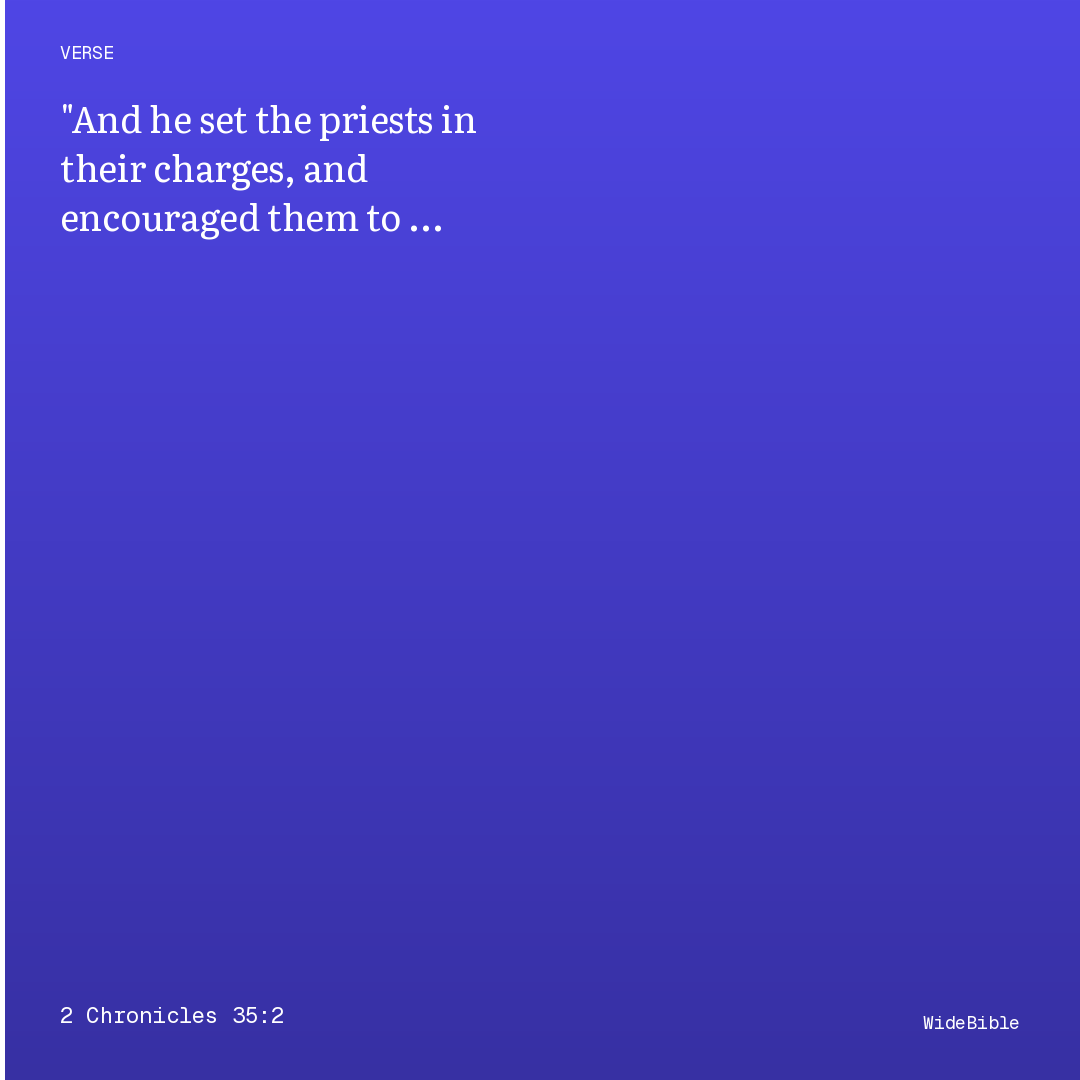 This verse from 2 Chronicles Chapter 35 connects to 10 cross-references. Josiah organizes the Levites and priests for service according to David's divisions and holds a Passover that is the most magnificent since the prophet Samuel's time; enormous numbers of animals are given by Josiah and his officials for the people. …