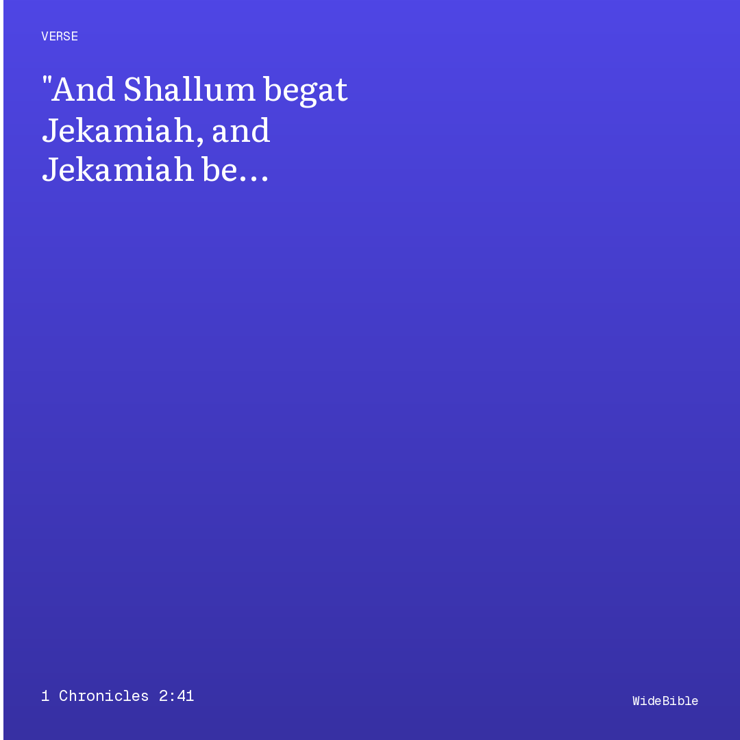 And Shallum begat Jekamiah, and Jekamiah begat Elishama.