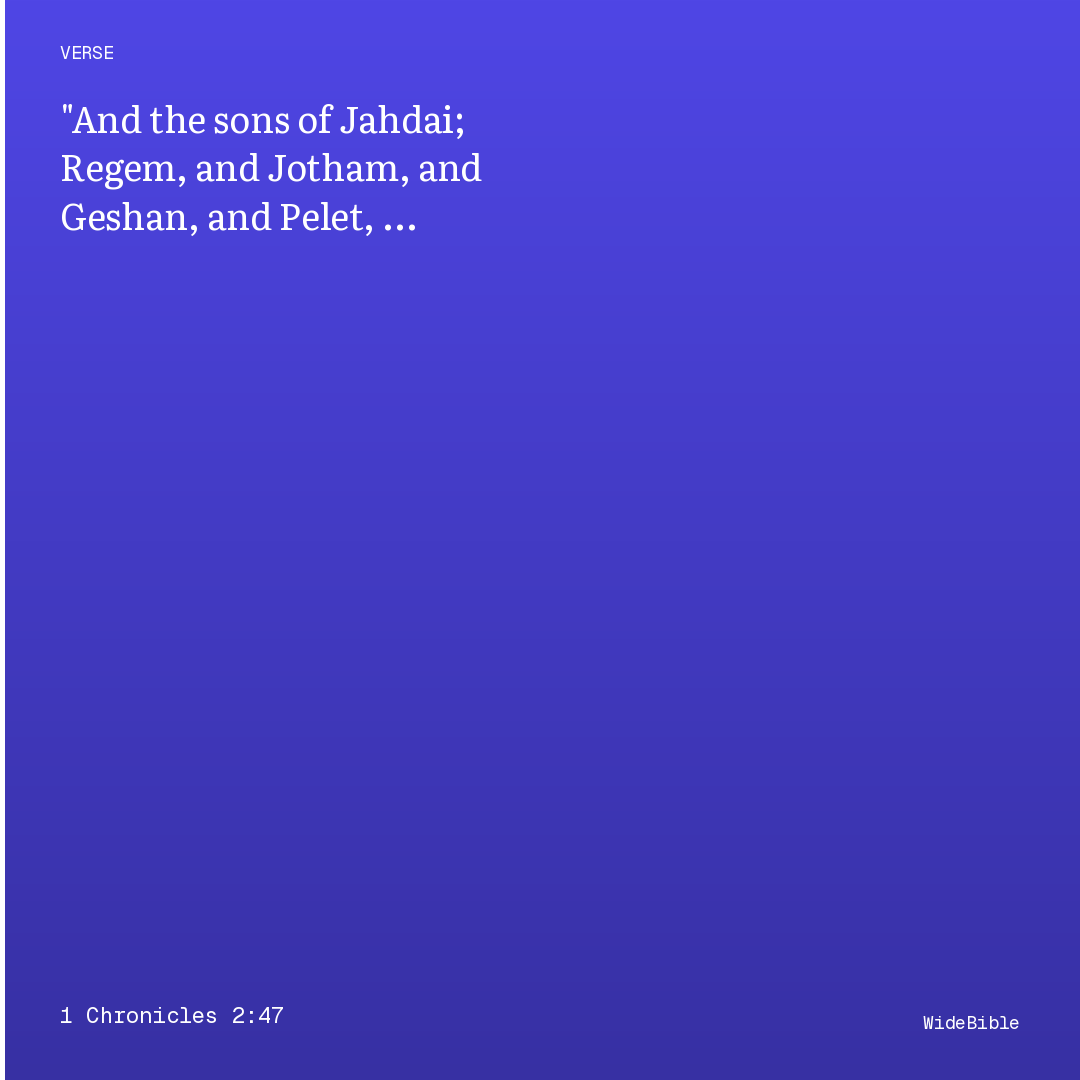 And the sons of Jahdai; Regem, and Jotham, and Geshan, and Pelet, and Ephah, and Shaaph.