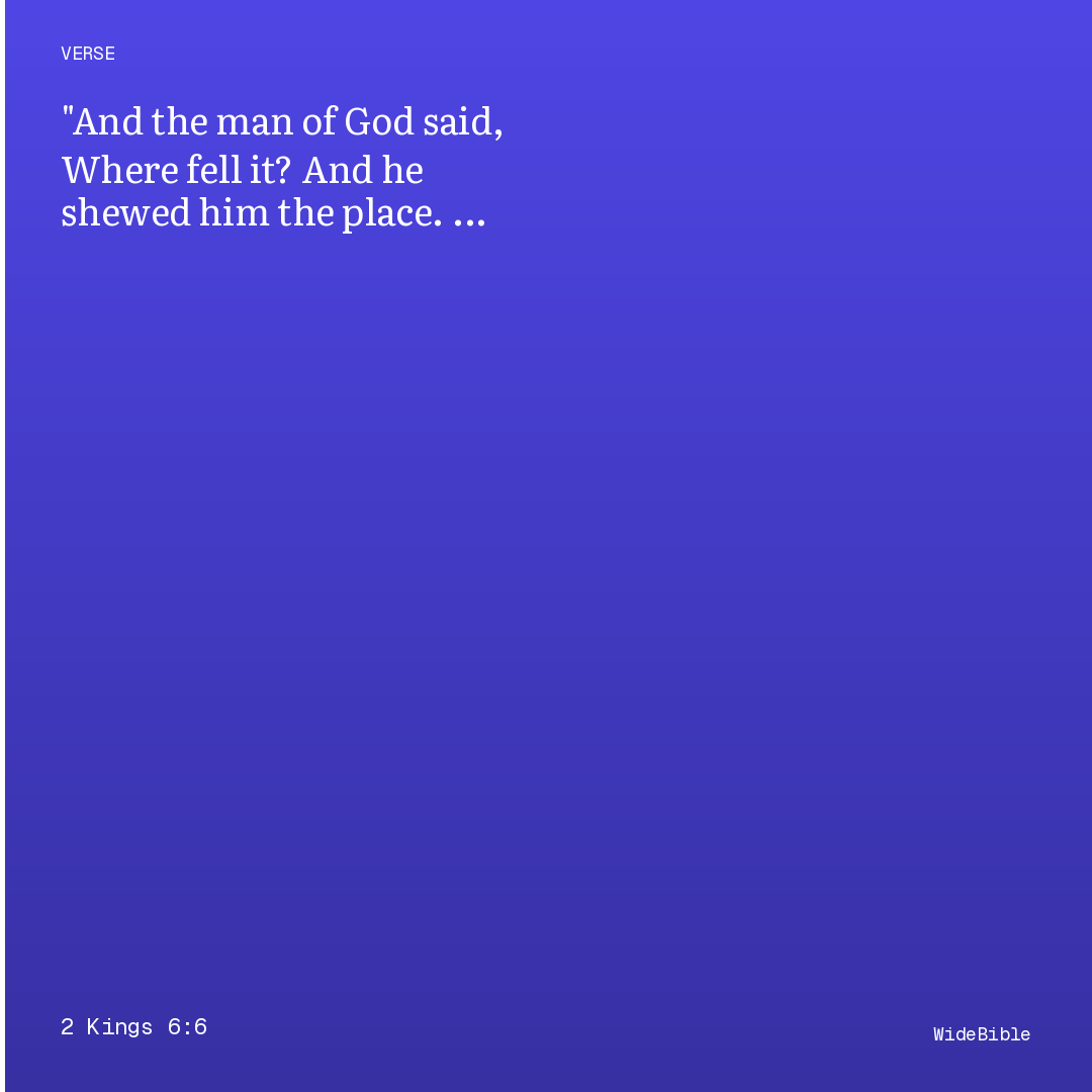 And the man of God said, Where did it go in? and when he saw the place where it had gone into the water, cutting a stick, he put it into the water, and the iron came up to the top of the water.