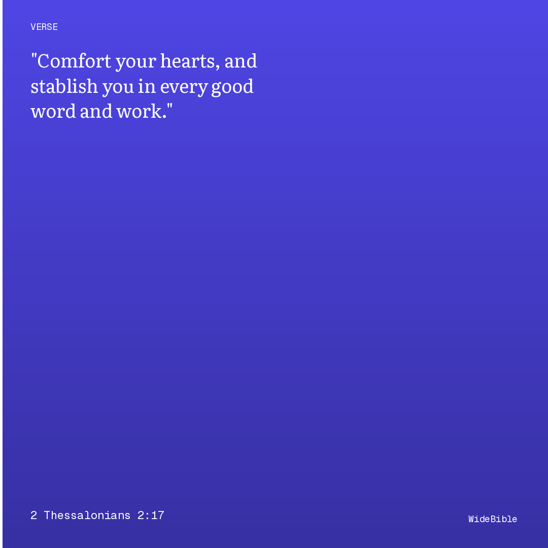 The pastoral benediction 'comfort your hearts, and stablish you in every good word and work' closes 2 Thessalonians 2's eschatological instruction with a prayer that the comfort of God's love (2:16) would produce both inward consolation and outward ethical stability. The twin goals — 'every good word and work' — integrate verbal witness and practical action as the inseparable expression of established Christian life, resisting any division between confessional speech and ethical conduct. The verb 'stablish' (stērixai) is used elsewhere in Paul for strengthening believers in faith (Romans 1:11; 1 Thessalonians 3:2) and reflects the concern of 2 Thessalonians throughout: against the destabilizing effect of eschatological misinformation that has disturbed the congregation (2:2). The verse has been incorporated into Christian benedictory tradition as a model of pastoral closure that combines affective consolation with practical exhortation.