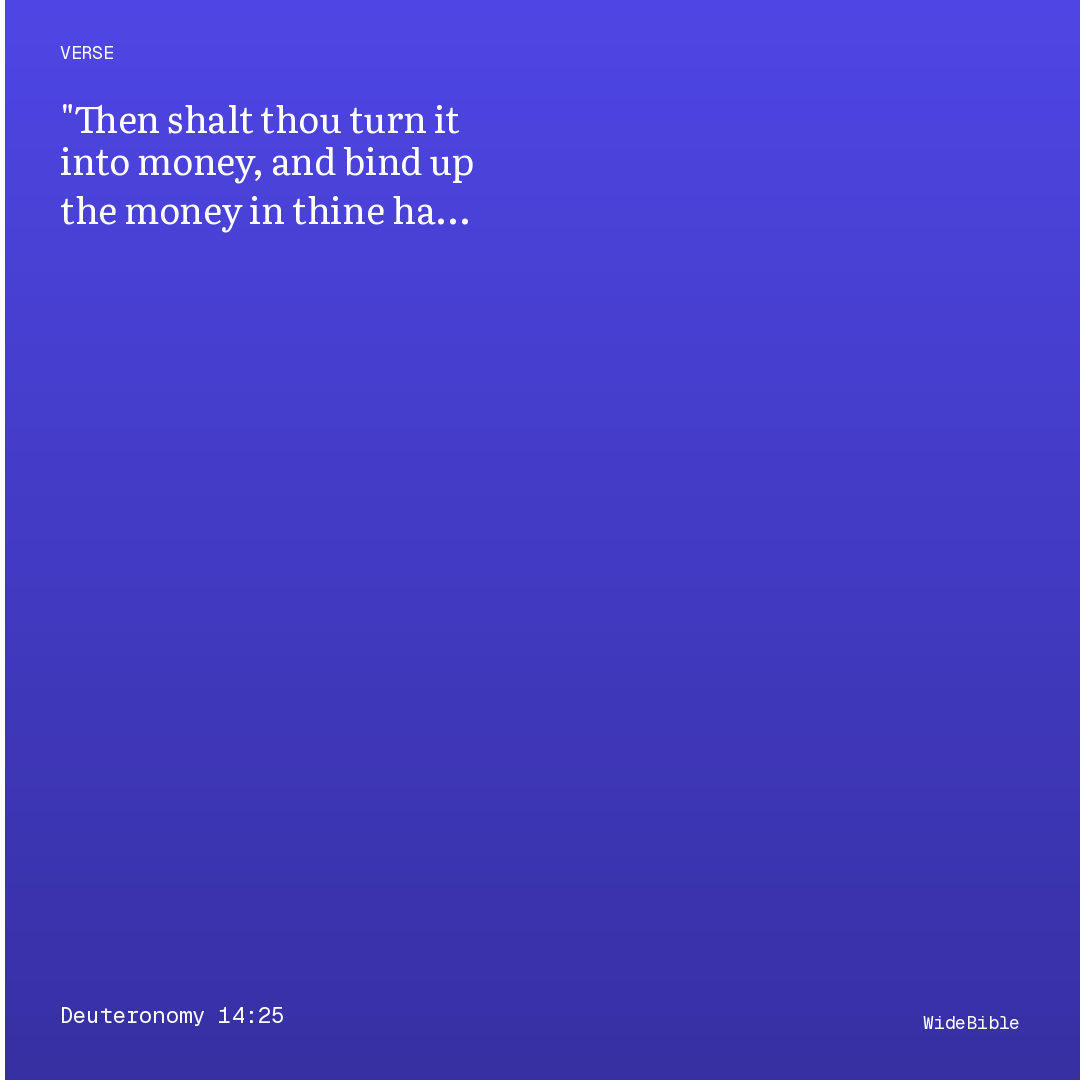 Then shalt thou turn it into money, and bind up the money in thine hand, and shalt go unto the place which the Lord thy God shall choose: