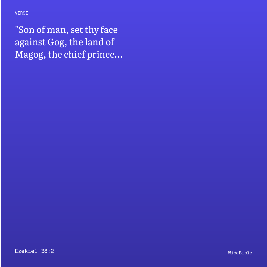 Son of man, set thy face against Gog, the land of Magog, the chief prince of Meshech and Tubal, and prophesy against him,