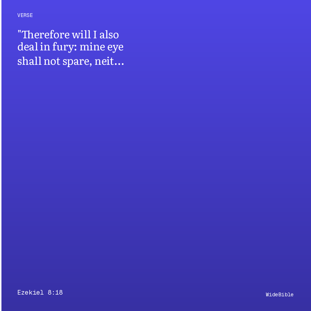 The divine declaration — 'therefore I will act in wrath. My eye will not spare, nor will I have pity. And though they cry in my ears with a loud voice, I will not hear them' — represents the most emphatic statement of divine judgment's finality in the book of Ezekiel. The verse comes as the conclusion to the vision of four abominations in the temple (8:1-17): idol worship, sun worship, Tammuz mourning, and sun prostration within the temple precincts themselves. The triple denial of mercy — will not spare, will not have pity, will not hear — inverts the covenant formulas of divine compassion (Exodus 34:6-7) and marks the point at which covenant loyalty has been so thoroughly abandoned that the normal categories of intercession no longer apply. The verse provides the theological premise for the six executioners of chapter 9 and for Ezekiel's sustained argument that the fall of Jerusalem was divinely necessary rather than a failure of divine protection.