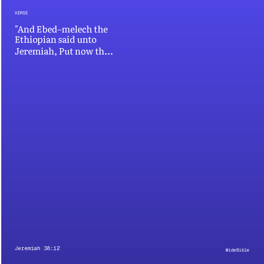 And Ebed-Melech the Cushite saith unto Jeremiah, `Put, I pray thee, the worn-out clouts and rags under thine arm-holes, at the place of the cords,' and Jeremiah doth so,