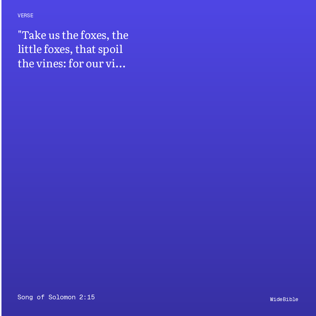 Take for us the foxes, the little foxes, which do damage to the vines; our vines have young grapes.