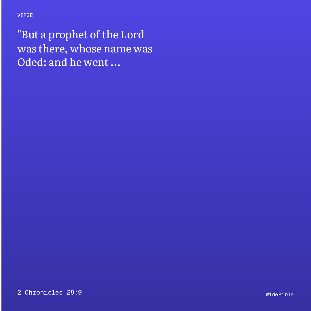 But a prophet of Jehovah was there, whose name was Oded: and he went out to meet the host that came to Samaria, and said unto them, Behold, because Jehovah, the God of your fathers, was wroth with Judah, he hath delivered them into your hand, and ye have slain them in a rage which hath reached up unto heaven.