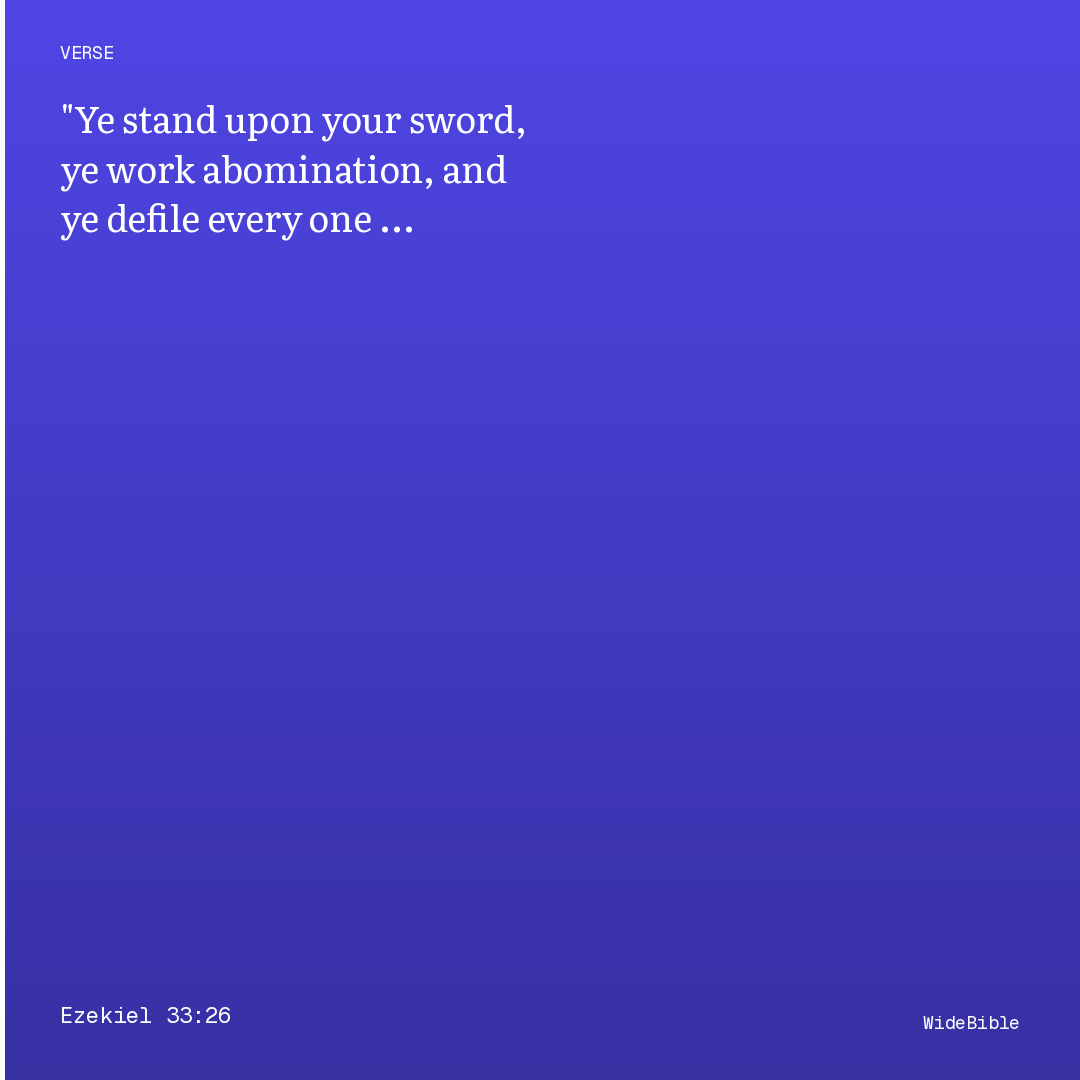 Ye stand upon your sword, ye work abomination, and ye defile every one his neighbor’s wife: and shall ye possess the land?
