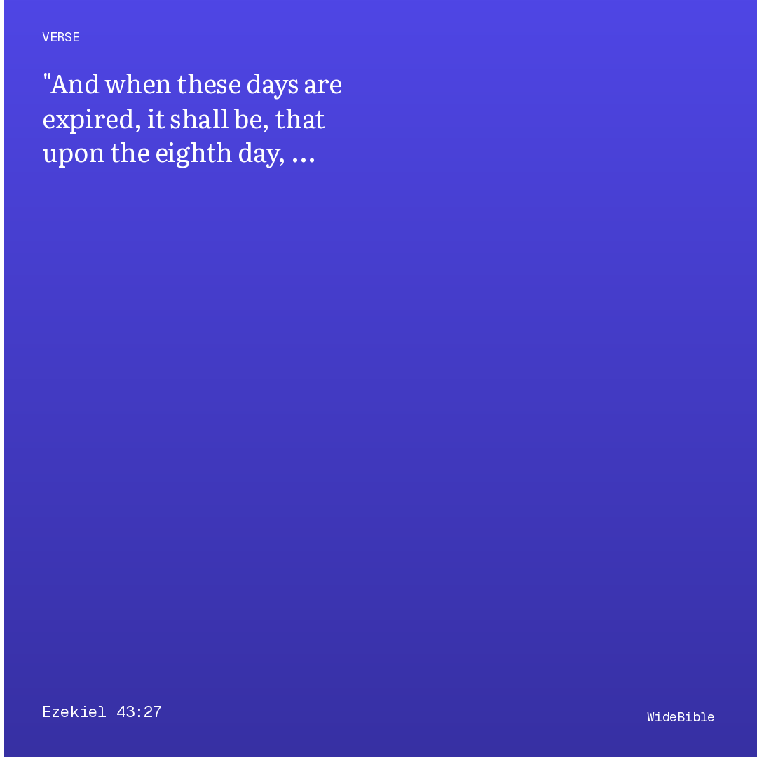 This verse from Ezekiel Chapter 43 connects to 10 cross-references. The glory of God returns from the east through the eastern gate, filling the temple. God declares he will dwell here forever and commands that the Israelites be ashamed of their abominations. Instructions for the altar of burnt offering and …