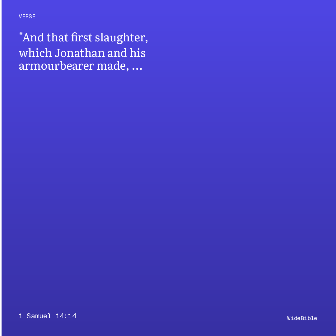 This verse from 1 Samuel Chapter 14 connects to 0 cross-references. Jonathan and his armor-bearer climb secretly to a Philistine outpost; Jonathan defeats twenty men and God sends an earthquake to throw the Philistine camp into panic. Saul recklessly adjures his men not to eat until evening; Jonathan, not hearing the …