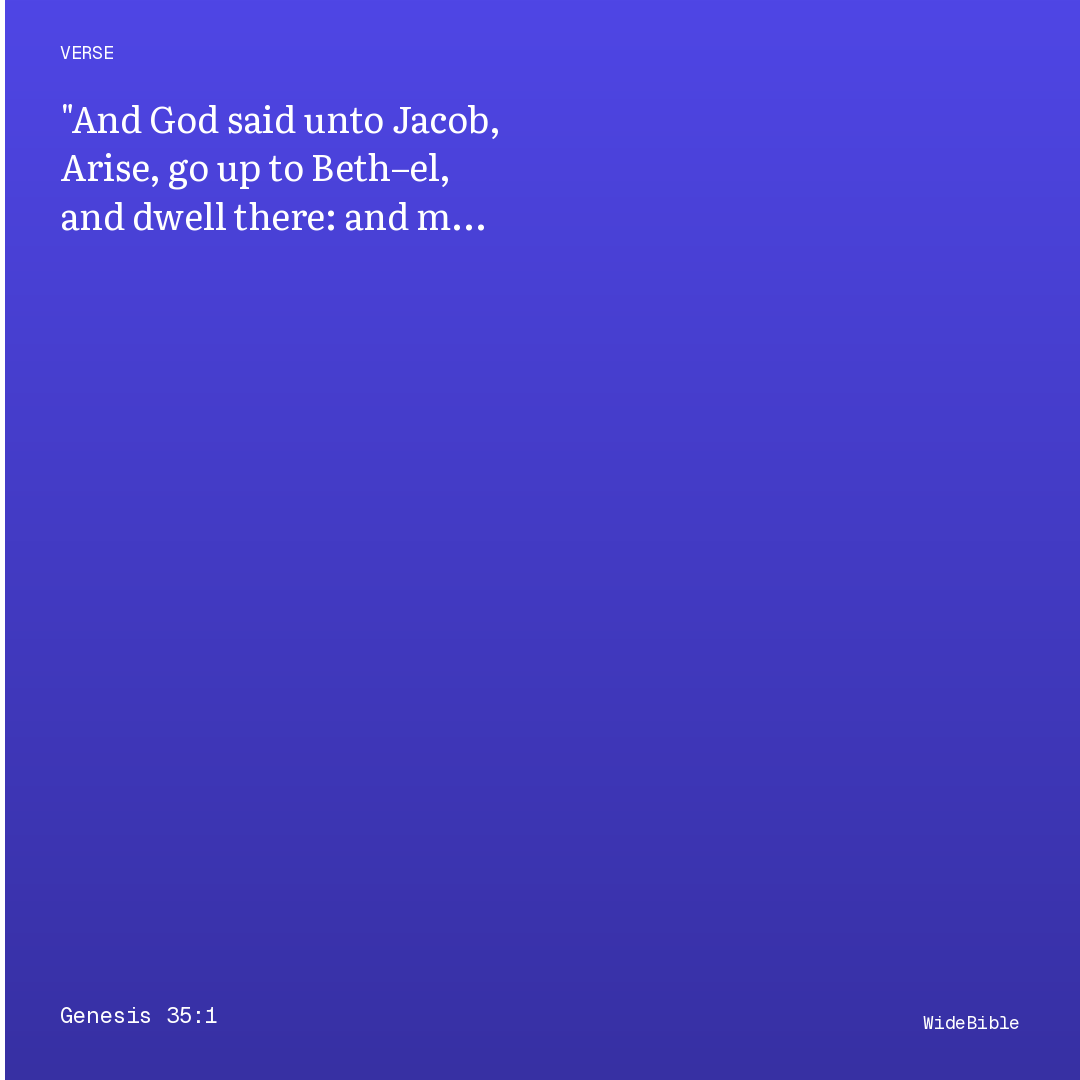 And God said unto Jacob, Arise, go up to Beth–el, and dwell there: and make there an altar unto God, that appeared unto thee when thou fleddest from the face of Esau thy brother.