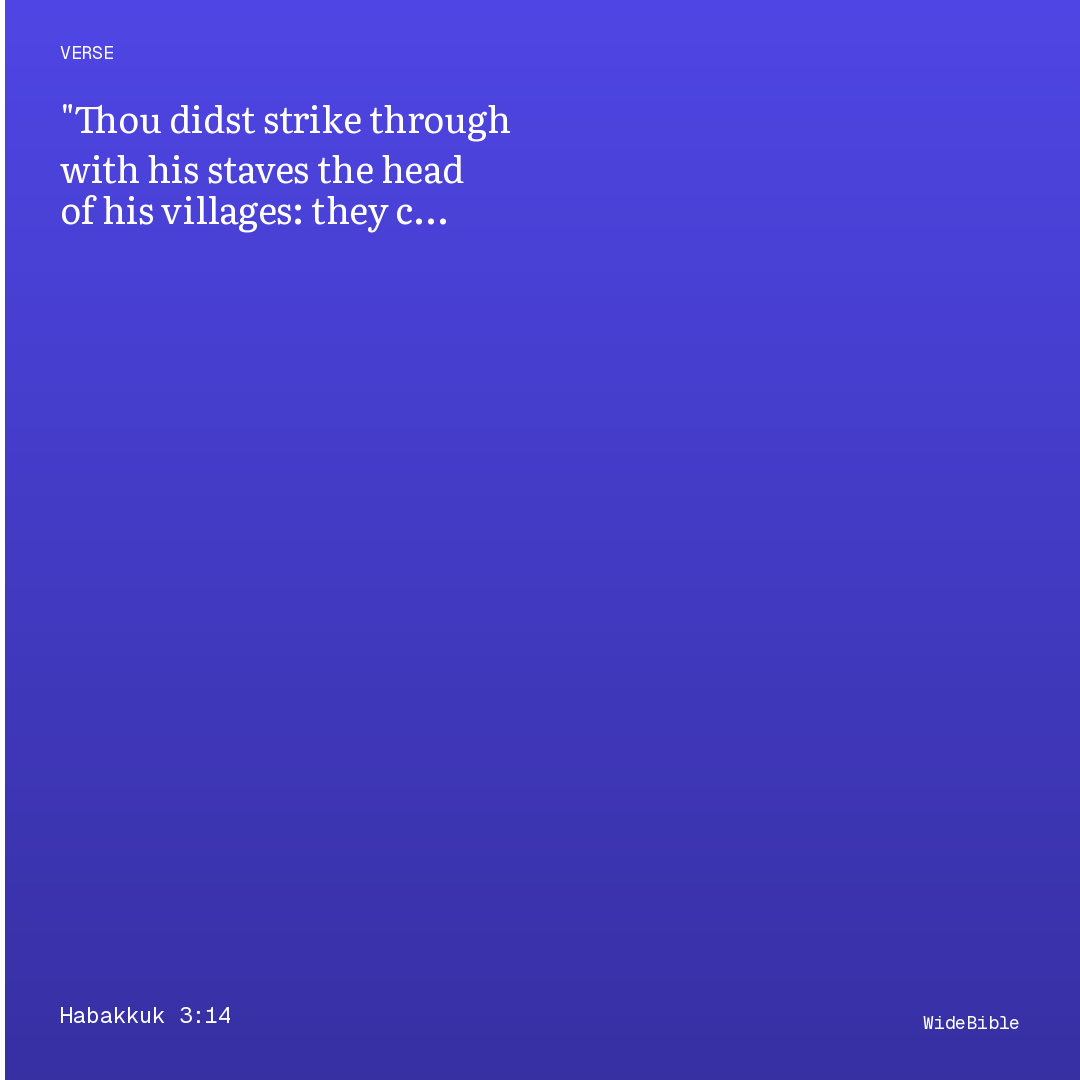 Thou didst pierce with his own staves the head of his warriors: They came as a whirlwind to scatter me; Their rejoicing was as to devour the poor secretly.