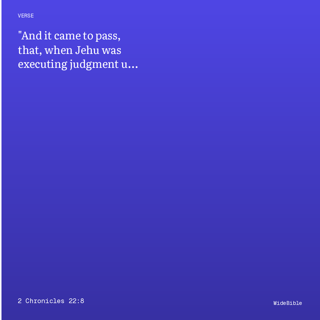 And it came to pass, that, when Jehu was executing judgment upon the house of Ahab, and found the princes of Judah, and the sons of the brethren of Ahaziah, that ministered to Ahaziah, he slew them.