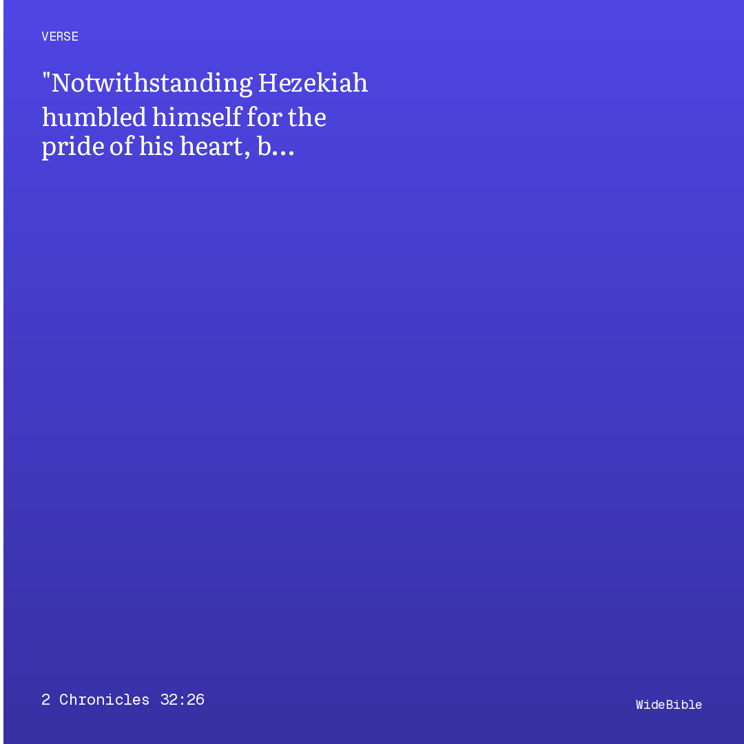 Notwithstanding Hezekiah humbled himself for the pride of his heart, both he and the inhabitants of Jerusalem, so that the wrath of Jehovah came not upon them in the days of Hezekiah.