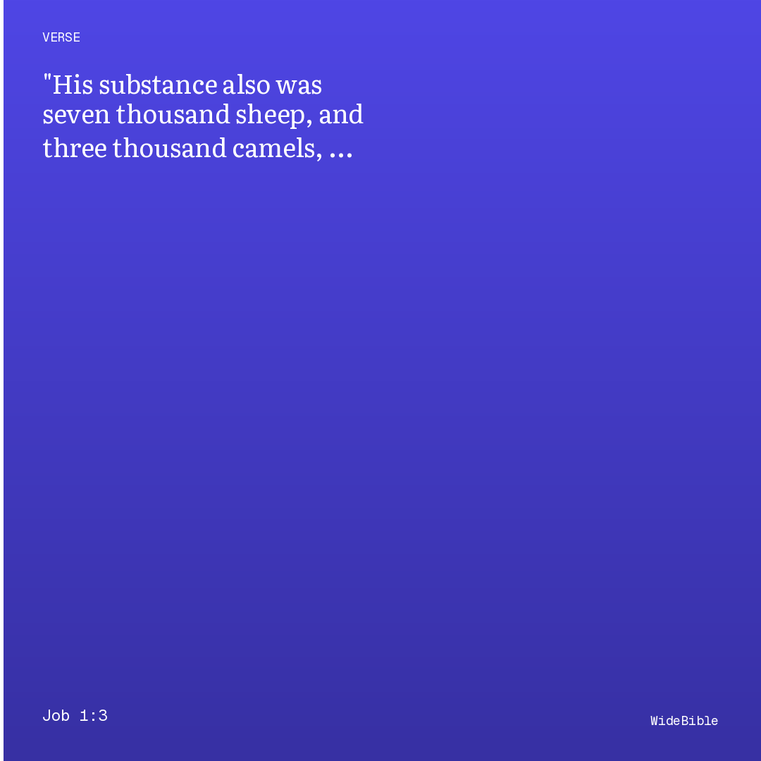 And of cattle he had seven thousand sheep and goats, and three thousand camels, and a thousand oxen, and five hundred she-asses, and a very great number of servants. And the man was greater than any of the sons of the east.