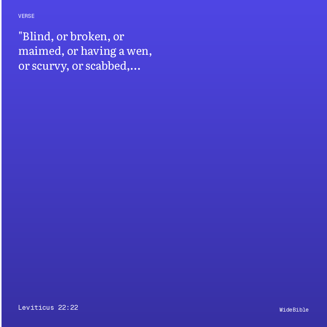 Blind, or broken, or maimed, or having a wen, or scurvy, or scabbed, ye shall not offer these unto the Lord, nor make an offering by fire of them upon the altar unto the Lord.