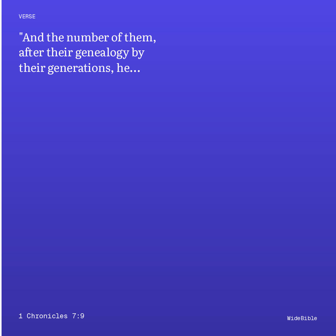 This verse from 1 Chronicles Chapter 7 connects to 0 cross-references. Genealogies of six tribes are recorded: Issachar, Benjamin (briefly), Naphtali, Manasseh (western), Ephraim, and Asher. The genealogy of Ephraim contains a narrative about Ephraim's sons killed in a raid on Gath and the birth of Joshua's ancestor. These genealogies focus …