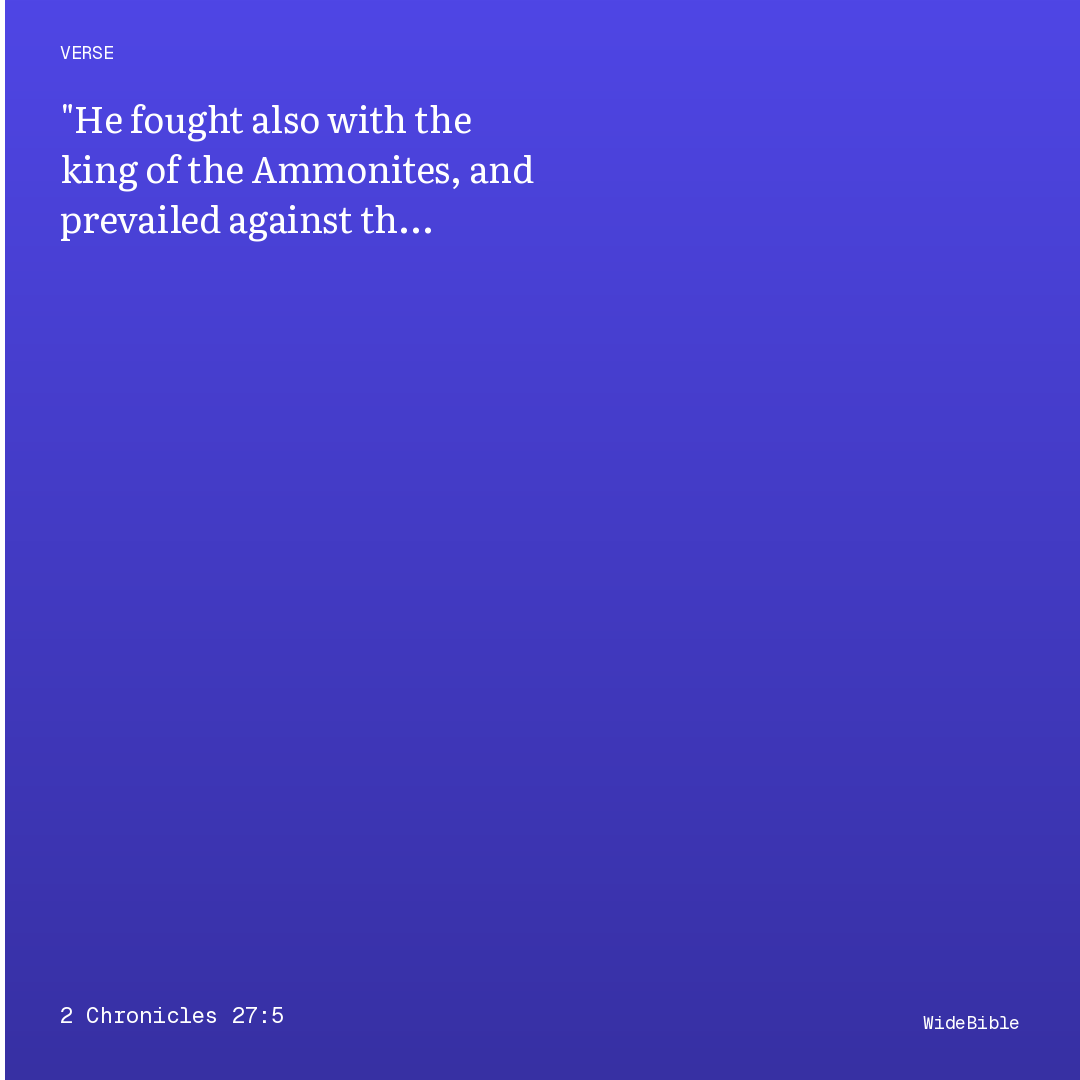 He fought also with the king of the children of Ammon, and prevailed against them. And the children of Ammon gave him the same year a hundred talents of silver, and ten thousand measures of wheat, and ten thousand of barley. So much did the children of Ammon render unto him, in the second year also, and in the third.