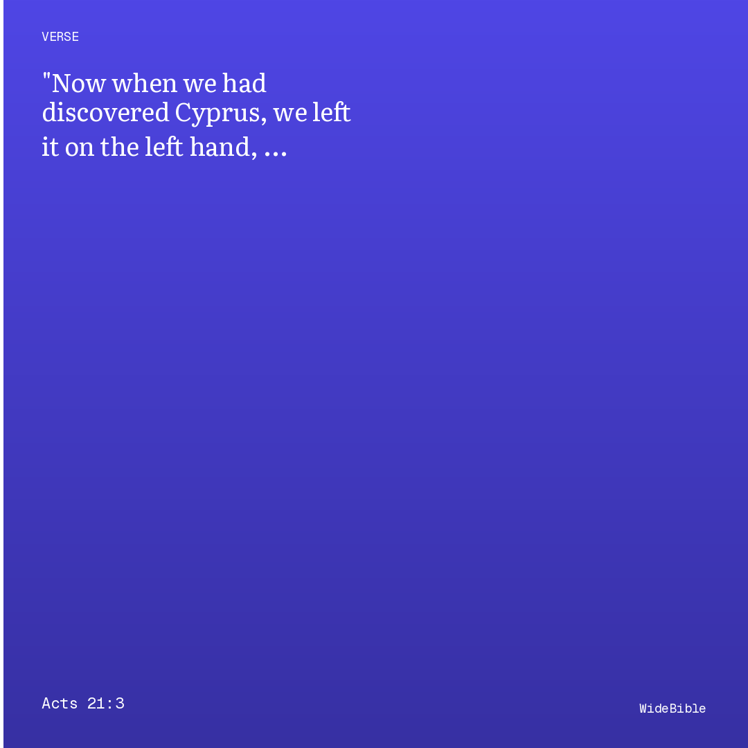 And when we had come in sight of Cyprus, leaving it on the left hand, we sailed unto Syria, and landed at Tyre; for there the ship was to unlade her burden.