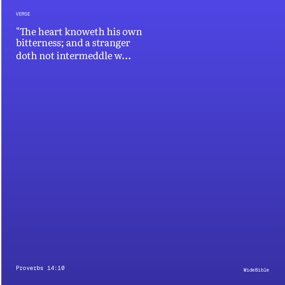 The heart knoweth its own bitterness, And with its joy a stranger doth not intermeddle.