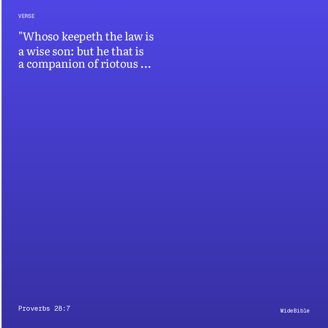 Whoso keepeth the law is a wise son: but he that is a companion of riotous men shameth his father.