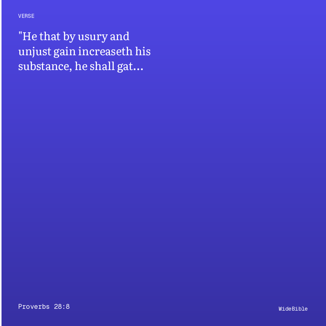 Whoso is multiplying his wealth by biting and usury, For one favouring the poor doth gather it.