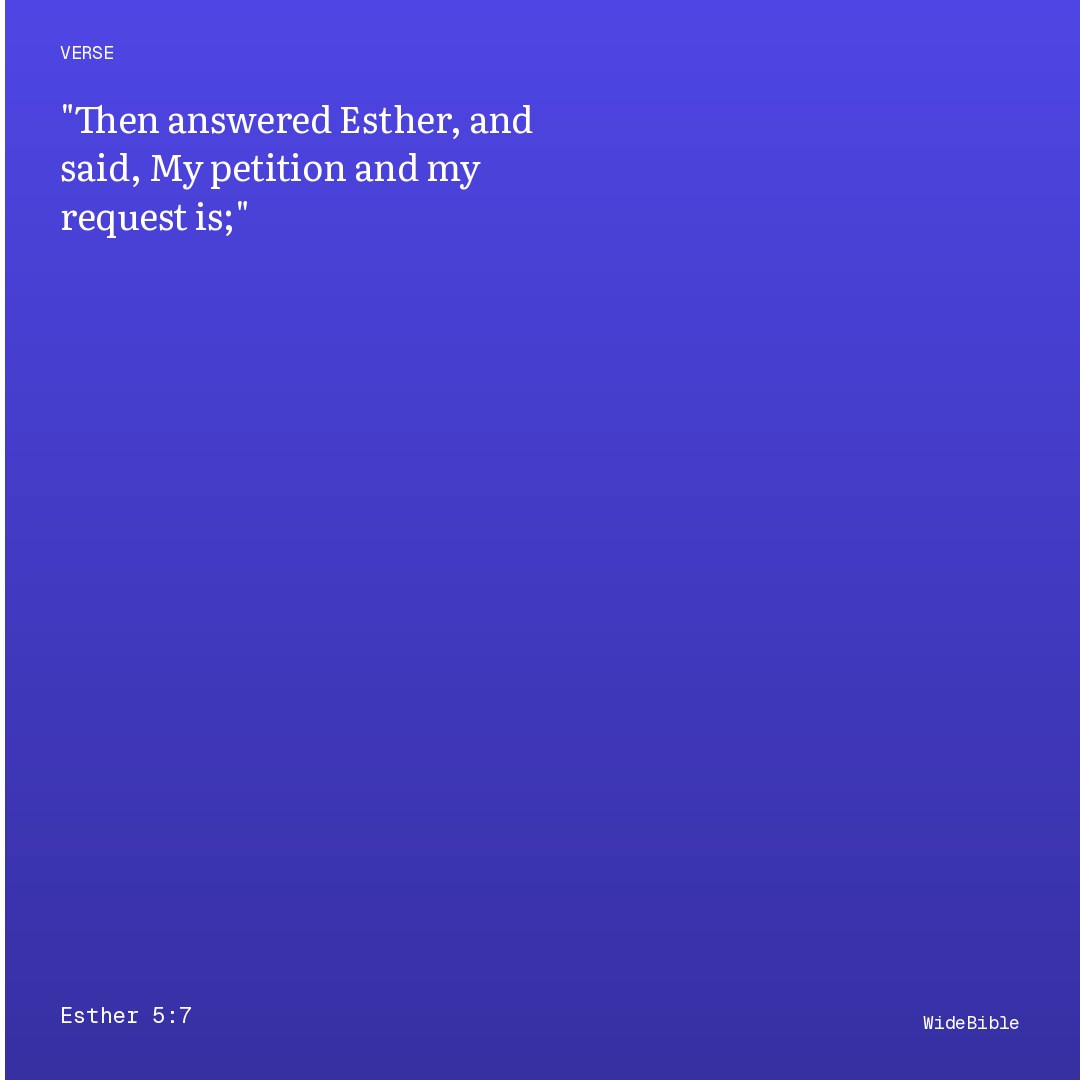 This verse from Esther Chapter 5 connects to 0 cross-references. Esther approaches the king uninvited; he extends his golden scepter, sparing her life, and asks what she wants. She invites Ahasuerus and Haman to a banquet, and at that banquet invites them to a second banquet the following day. Haman …