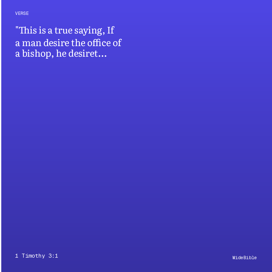 This is a true saying, A man desiring the position of a Bishop has a desire for a good work.
