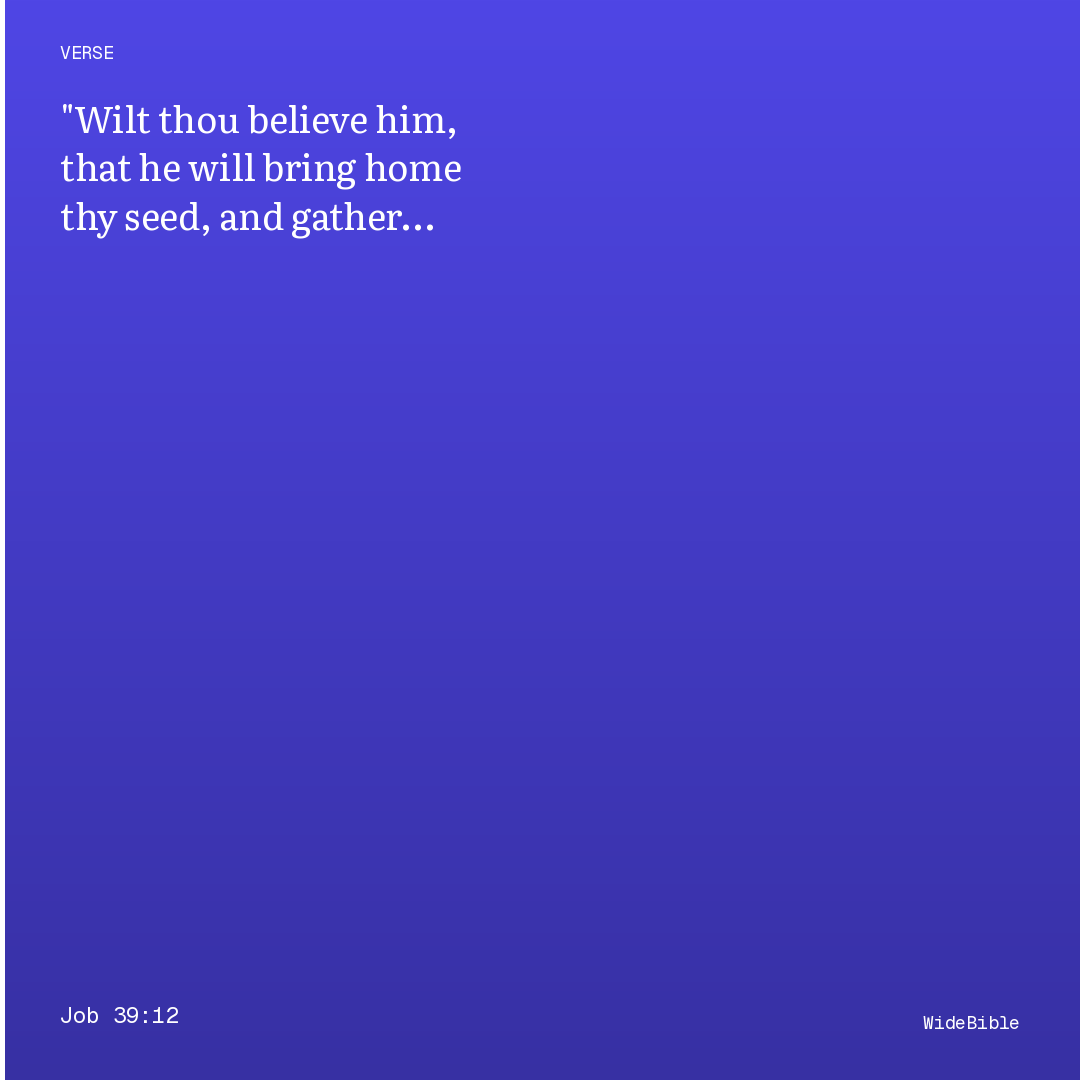 Wilt thou confide in him, that he will bring home thy seed, And gatherthe grainof thy threshing-floor?