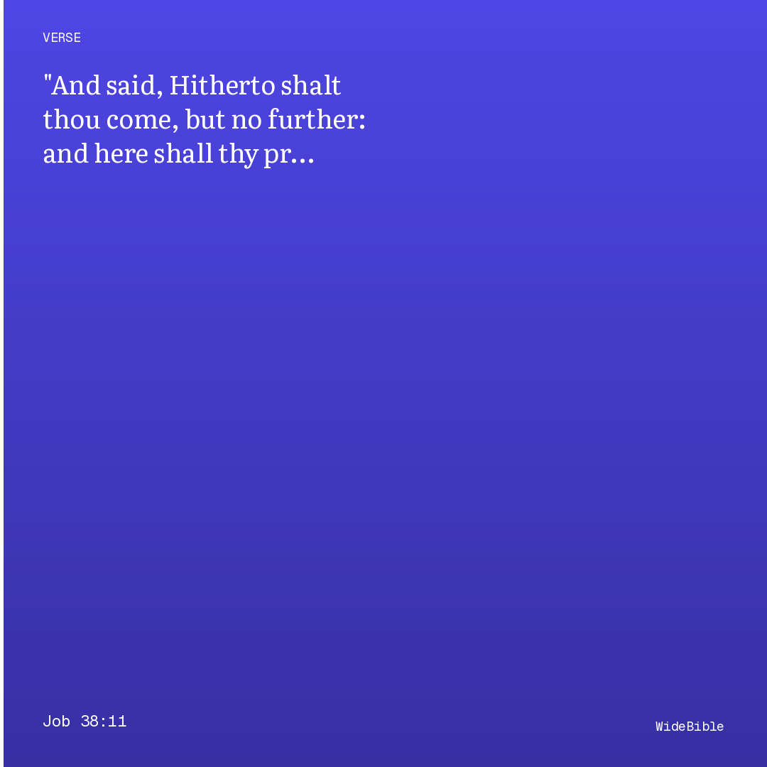God's address to Job from the whirlwind includes the challenge about setting the sea's boundaries: 'hitherto shalt thou come, but no further: and here shall thy proud waves be stayed?' — a question that humbles Job's attempts to call God to account by confronting him with the limits of his own creaturely knowledge. The chaoskampf tradition of divine ordering of primordial waters (Psalm 89:9; Jeremiah 5:22) stands behind this imagery — the sea represents the forces of dissolution and disorder that only divine speech can limit. The speech as a whole (38-39) does not answer Job's specific theological complaints about injustice but reframes the entire discussion by demonstrating the gap between creaturely and divine perspective on cosmic order. Job's response (40:3-5; 42:1-6) models the movement from accusation to awe that the divine speeches are designed to produce.