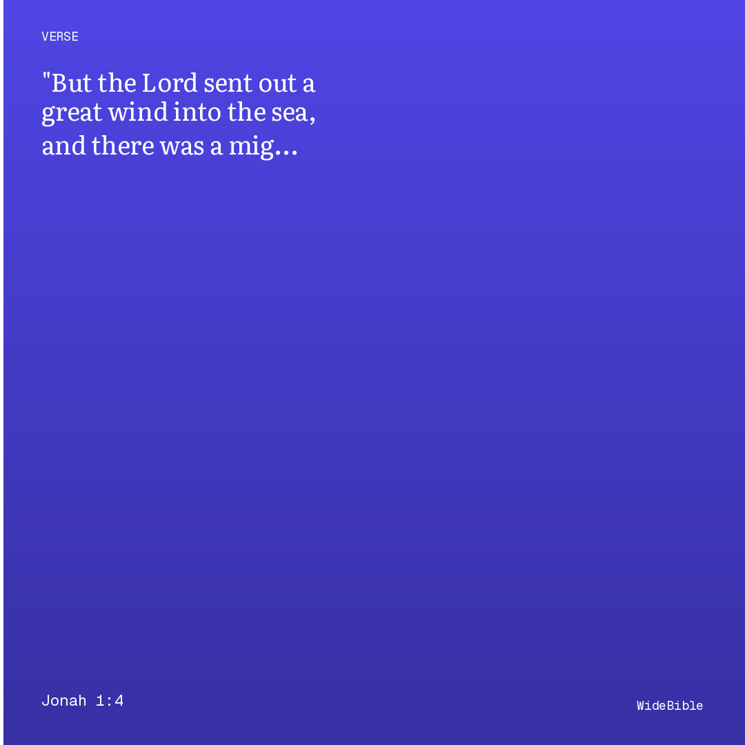 This verse from Jonah Chapter 1 connects to 10 cross-references. God commands Jonah to preach against Nineveh. Instead Jonah flees to Tarshish by sea. God sends a violent storm and the sailors cast lots revealing Jonah as the cause. Jonah admits his flight from God and tells them to throw …