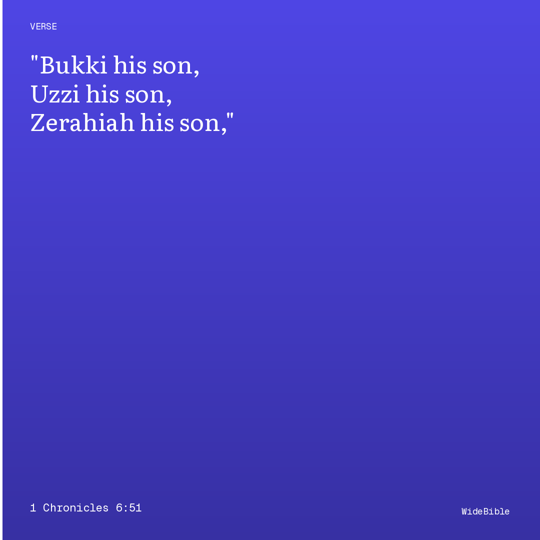 This verse from 1 Chronicles Chapter 6 connects to 0 cross-references. The extensive genealogy of Levi traces the high-priestly line from Levi through Aaron to the exile, and separately the genealogies of the three Levite clans. David's appointment of chief musicians—Heman, Asaph, and Ethan—is described with their genealogies. The forty-eight Levitical …