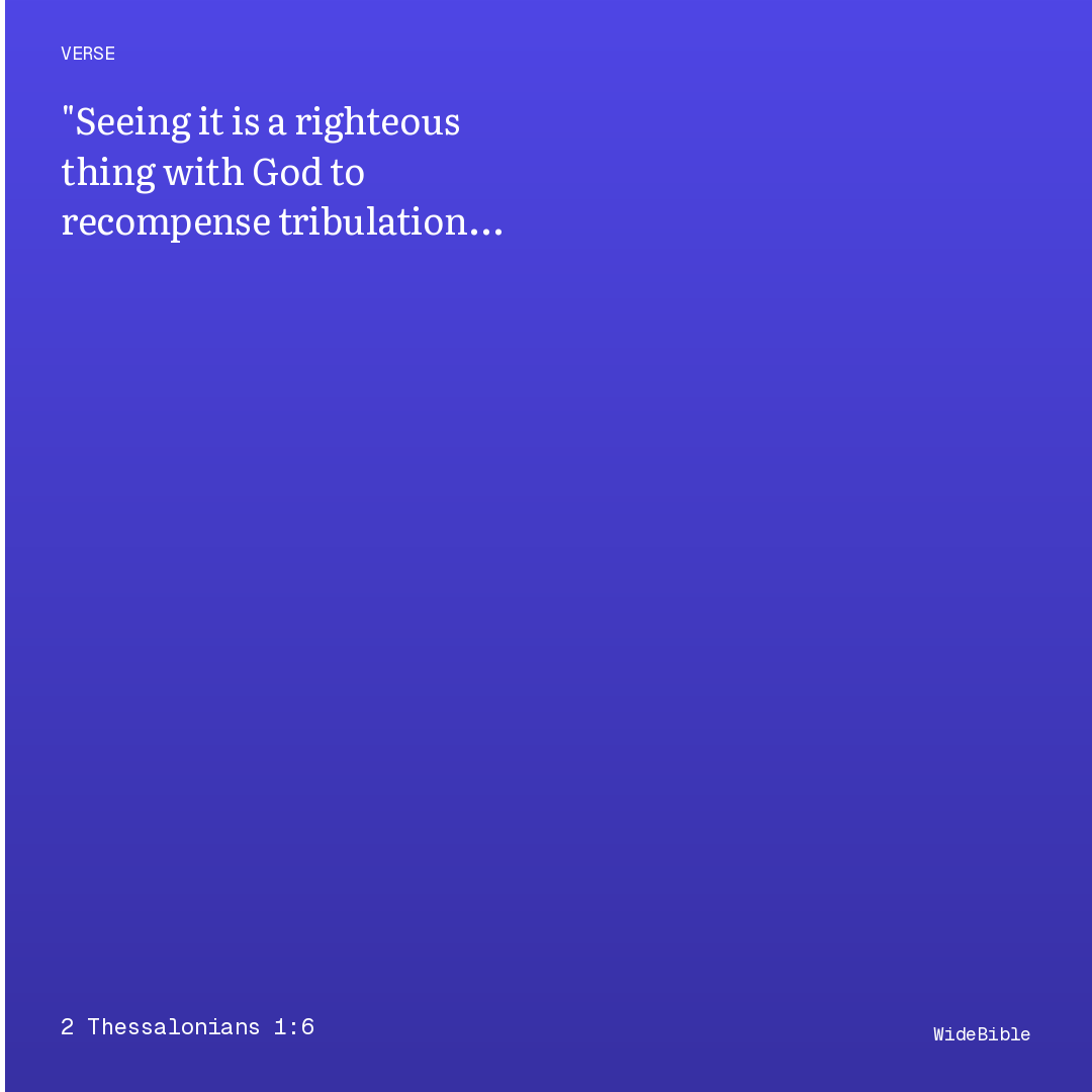The declaration that 'it is a righteous thing with God to recompense tribulation to them that trouble you' grounds eschatological judgment not in divine vengeance but in divine righteousness — retributive justice as the expression of God's moral character. The law-of-talion logic ('tribulation to them that trouble you') appears throughout the Old Testament prophets (Isaiah 66:6; Obadiah 15) and is here placed within an explicit parousia context: the 'Lord Jesus shall be revealed from heaven with his mighty angels, in flaming fire' (vv. 7-8). Paul's pastoral purpose is to console a persecuted community by assuring them that their suffering is not cosmic randomness but will be addressed by perfect divine justice. The verse became significant in theodicy discussions and in Reformers' defences of the doctrine of eternal punishment as consistent with divine righteousness.
